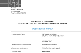 Objavljujemo Izvješće sa javne rasprave za UPU Ugostiteljsko-turističke zone kampa/autokampa (T3) "Babin Laz".