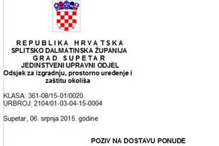 Grad Supetar objavljuje javni poziv za dostavu ponude - nastavak uređenja parkirališta u Mircima.Predmet nabave je nastavak izvođenja radova na uređenju parkirališta sa istočne strane skretanja sa državne