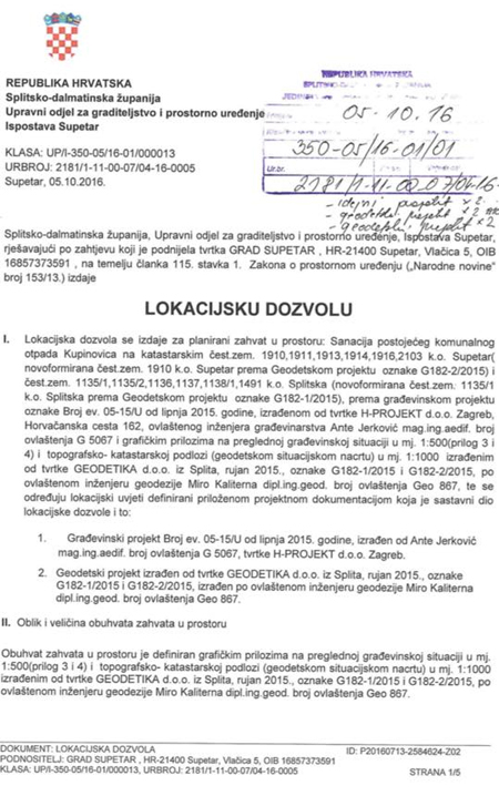 Grad supetar dobio je lokacijsku dozvolu sa sanaciju odlagališta Kupinovica.