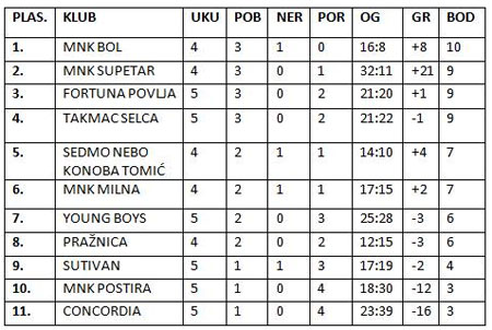 U supetarskoj je školskoj-sportskoj dvorani odigrano 5. kolo Bračke lige malog nogometa nakon kojega je ekipa MNK Bola usprkos neriješenog rezultata protiv momčadi Milne uspjela očuvati prvo mjesto na ljestvici.momčad Milne uspjela otkinuti bod.
